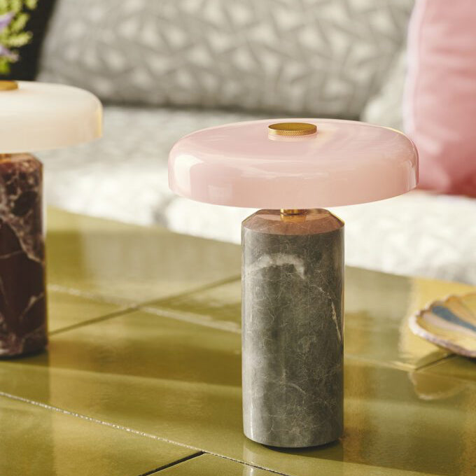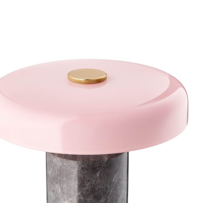 TRIP Tragbare Lampe mit grauem Marmorsockel und rosa Lampenschirm!