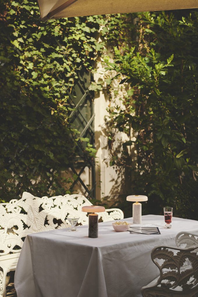 Die Lampe spendet sowohl stimmungsvolles als auch funktionales Licht und lässt sich leicht zwischen verschiedenen Räumen transportieren oder für ruhige Abende auf die Terrasse oder den Balkon mitnehmen. Ein Touch-Dimmer an der Oberseite ermöglicht die Auswahl zwischen drei Helligkeitsstufen. Die natürlichen Maserungen des Marmors machen jede Lampe zu einem Unikat.