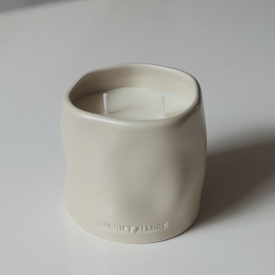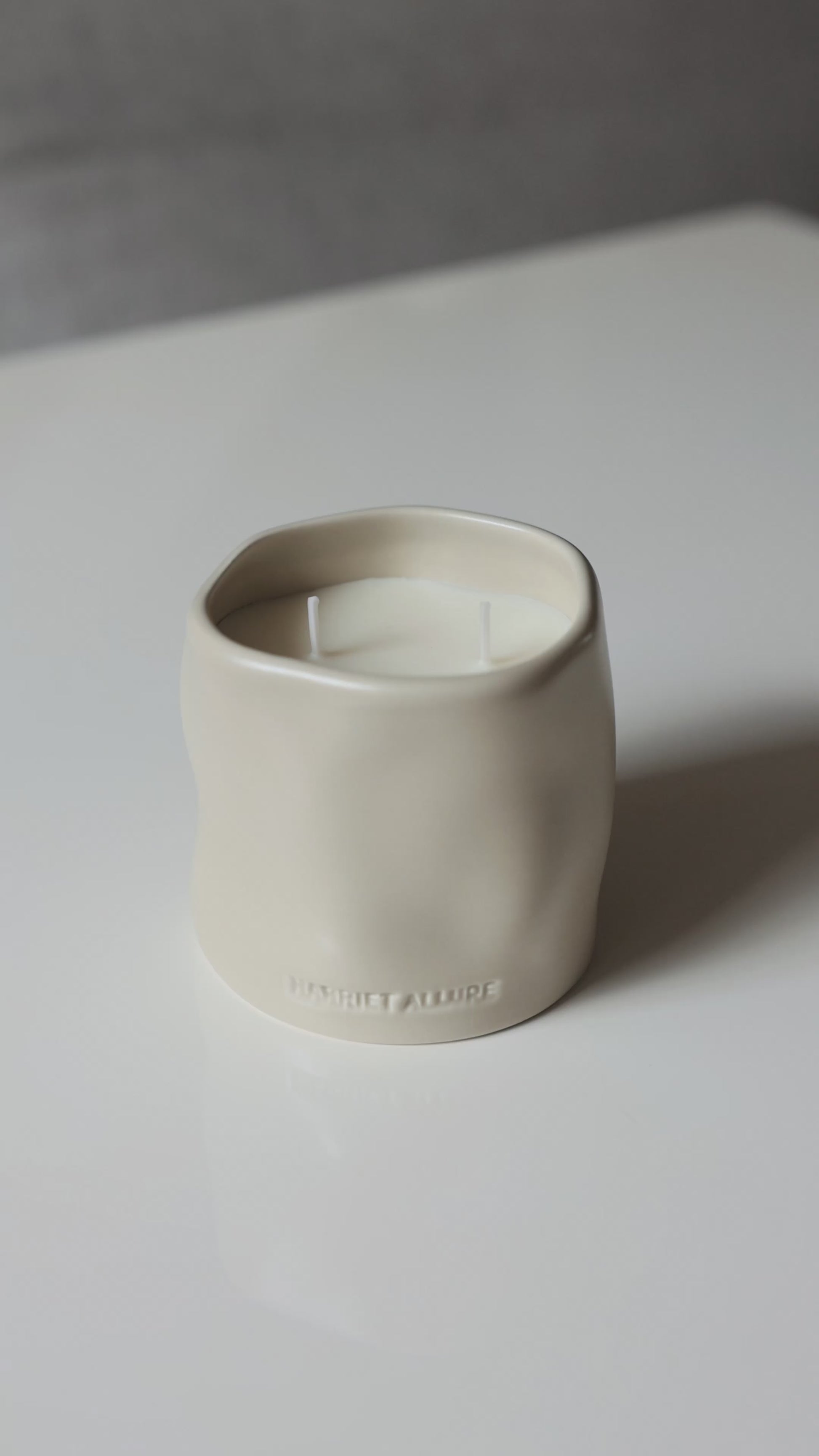 The collection is minimal and organic, designed in Sweden and handmade in Portugal from recycled clay, with scents developed in Grasse, France. The design was born during a ceramics course, which is evident in the softly shaped vessels, each unique in their shape.