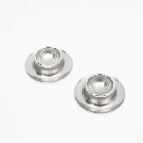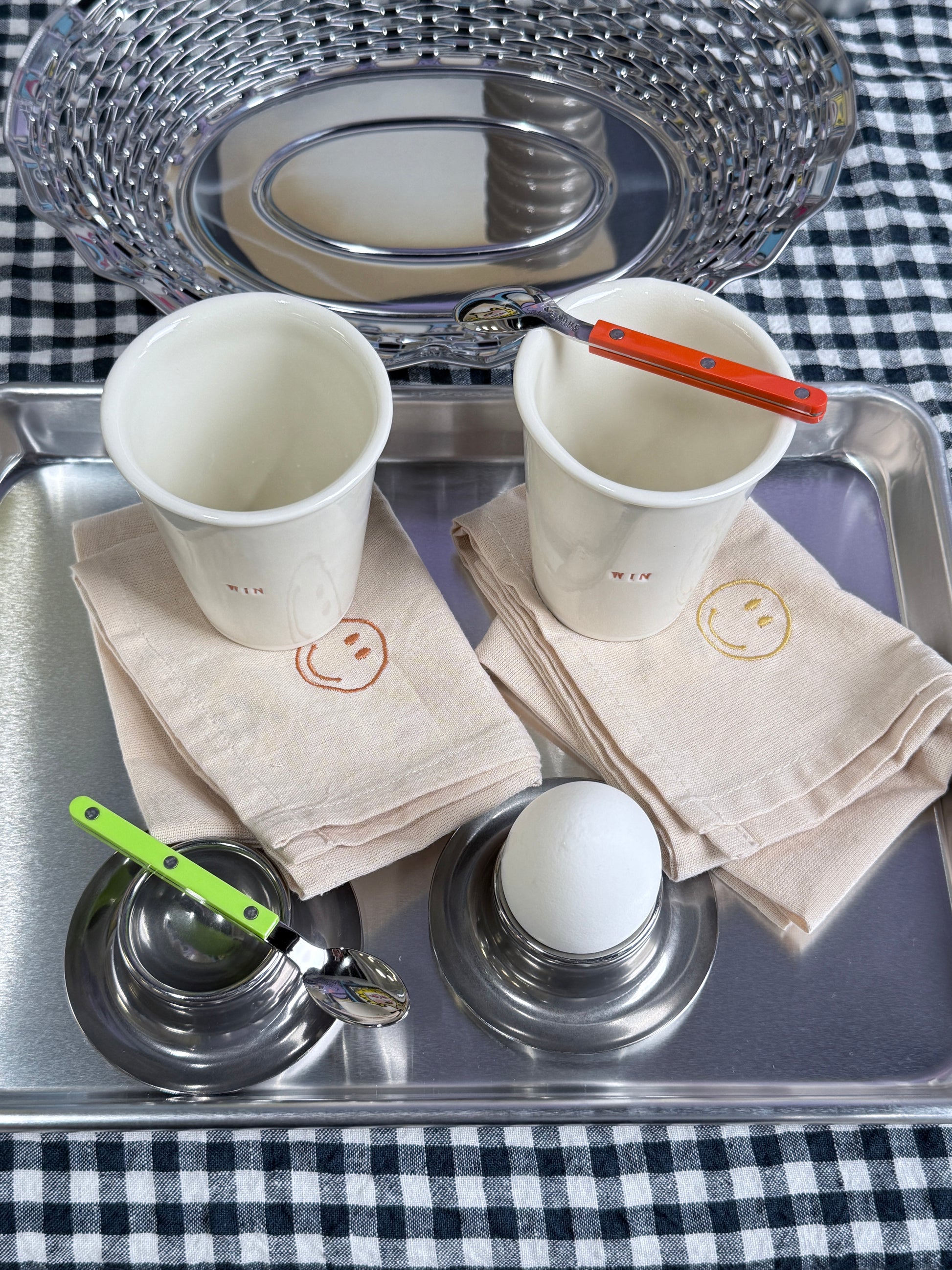 Two round egg cups in stainless steel, manufactured in Italy and use on Restaurant 16 in Copenhagen, the well-known restaurant that combines Italian simplicity with Nordic flair. The design is timeless and elegant and perfect for the breakfast table or brunch.