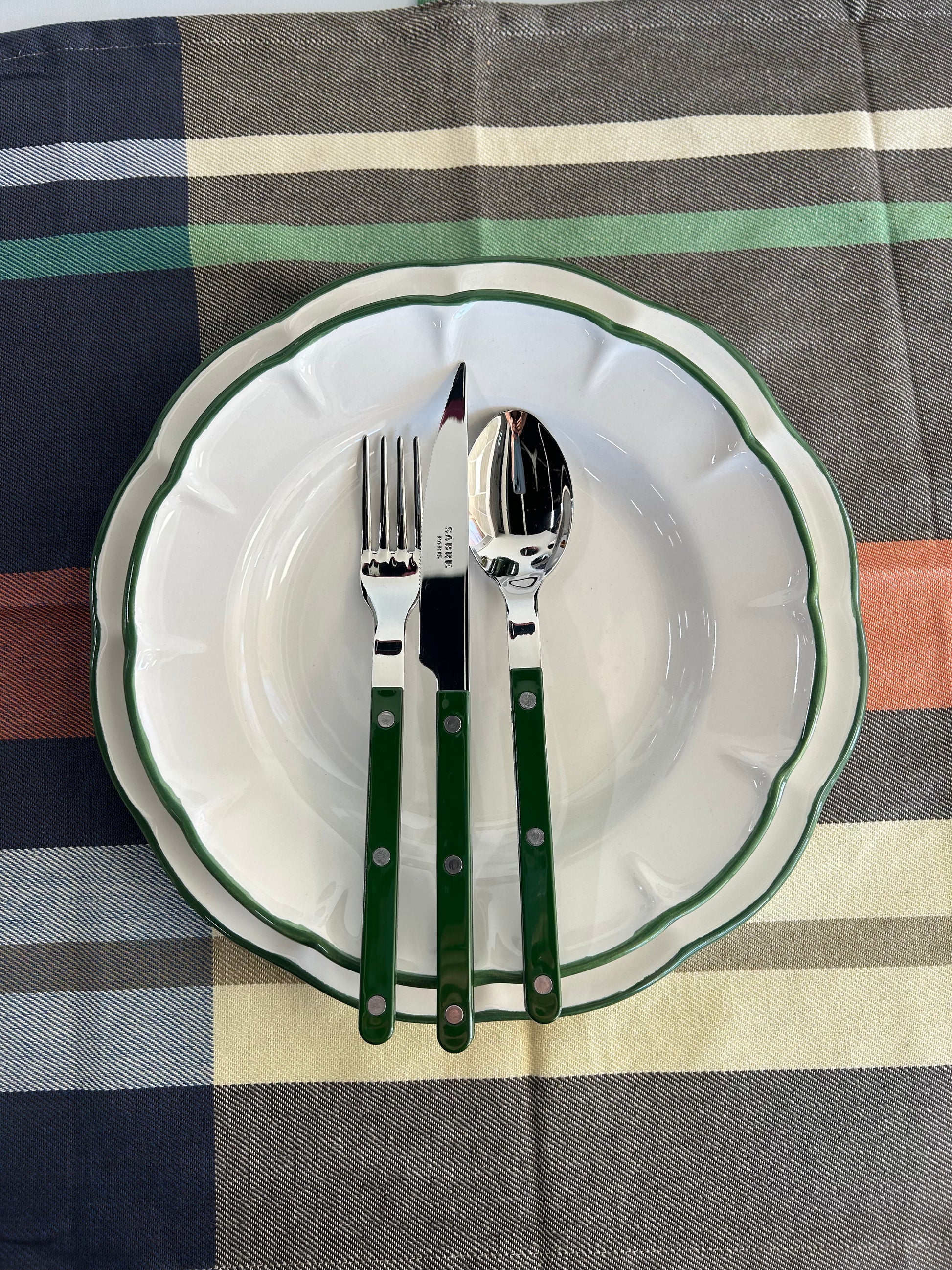BistroThe collection is inspired by classic French cafés, restaurants and terraces. With its glossy dark green handle, visible rivets and 18/10 stainless steel, this set gives a modern and stylish feel to your table setting.