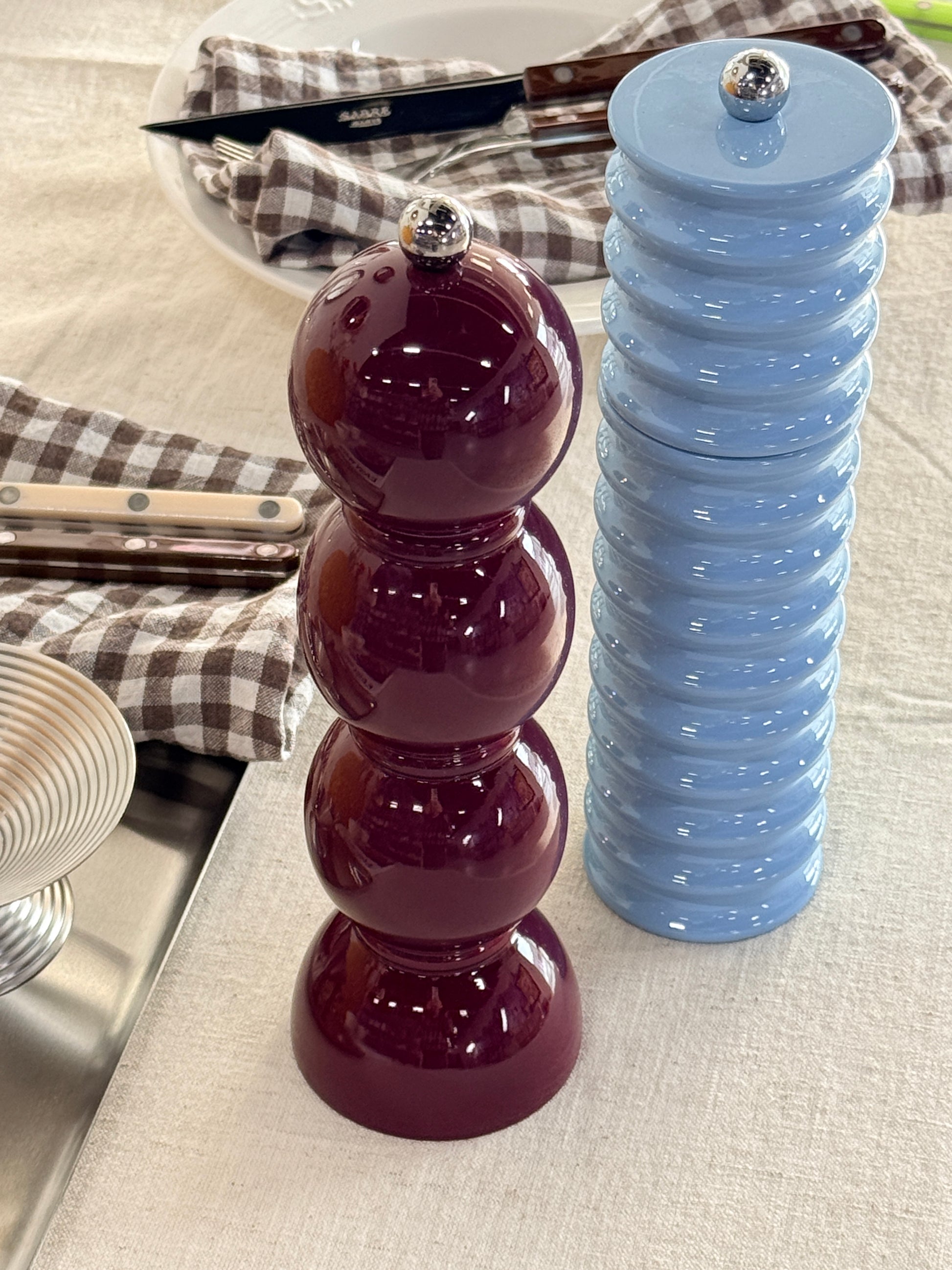 Kupliva, viininpunainen suola- ja pippurimylly (24 cm) sopii sekä suolalle että pippurille. Mukana kaksi hopeista nuppia - S & P, jotka voit kytkeä päälle sisällöstä riippuen.