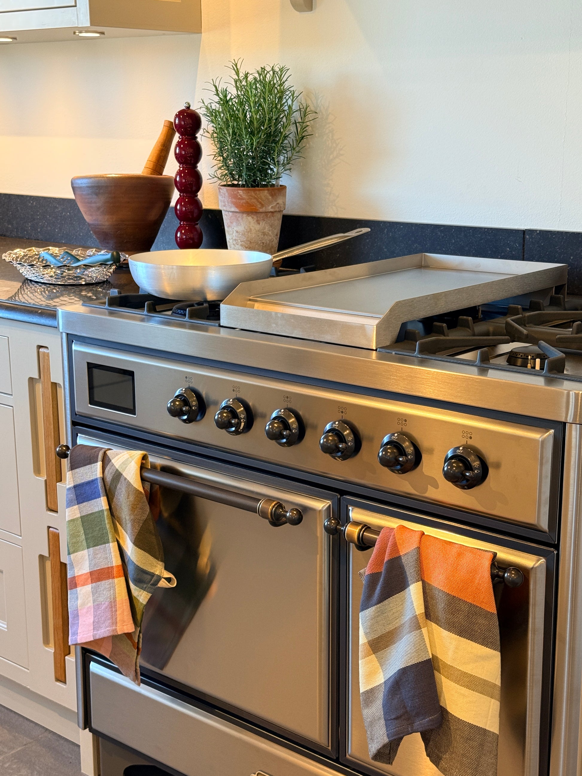 Nämä kaksi ruudullista moniväristä keittiöpyyhettä ovat yksityiskohta, joka piristää keittiötä!