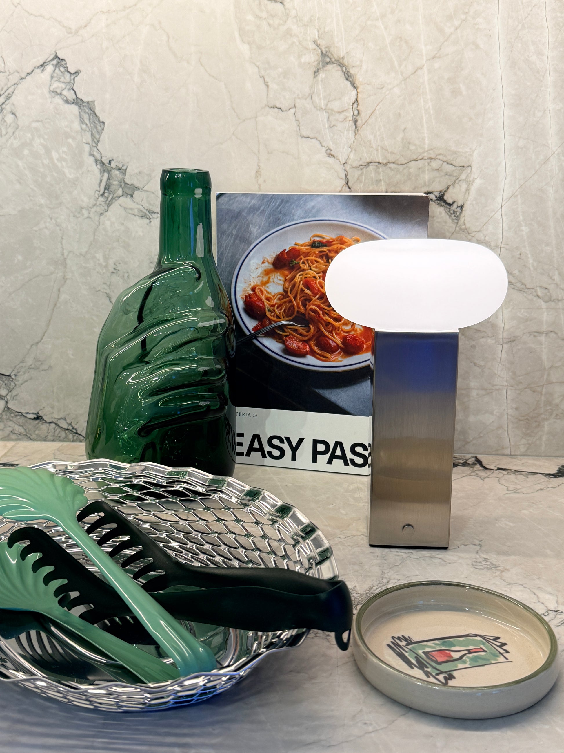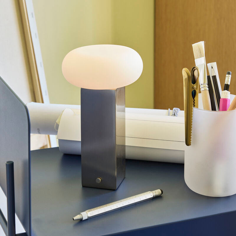 Low on kannettava valaisin, jossa on opaalilasivarjostin ja harjattu teräsjalusta. Kompaktin muotonsa ansiosta se on helppo sijoittaa yöpöydälle, ruokapöydälle, hyllylle tai lukunurkkaukseen.