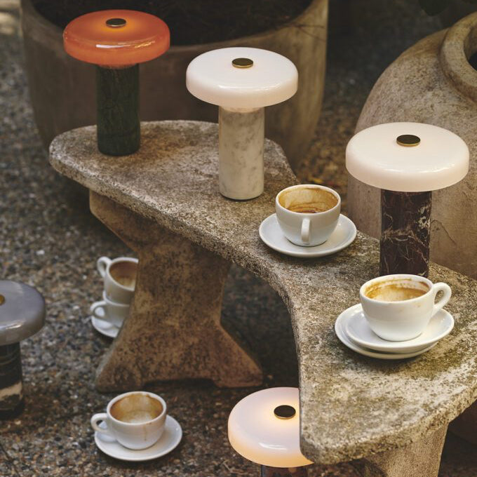 TRIP on tyylikäs, kannettava ja ladattava lamppu valmistajalta Meidän suunnittelemamme joka yhdistää muodon ja toimivuuden johdottomassa muotoilussa. Vankan marmorijalustan ja suupuhallettuun lasivarjostimeen ansiosta se antaa hienostuneen ilmeen, joka sopii yhtä hyvin sekä moderneihin että klassisiin ympäristöihin. Jopa 14 tuntia akunkestoa maksimikirkkaudella.
