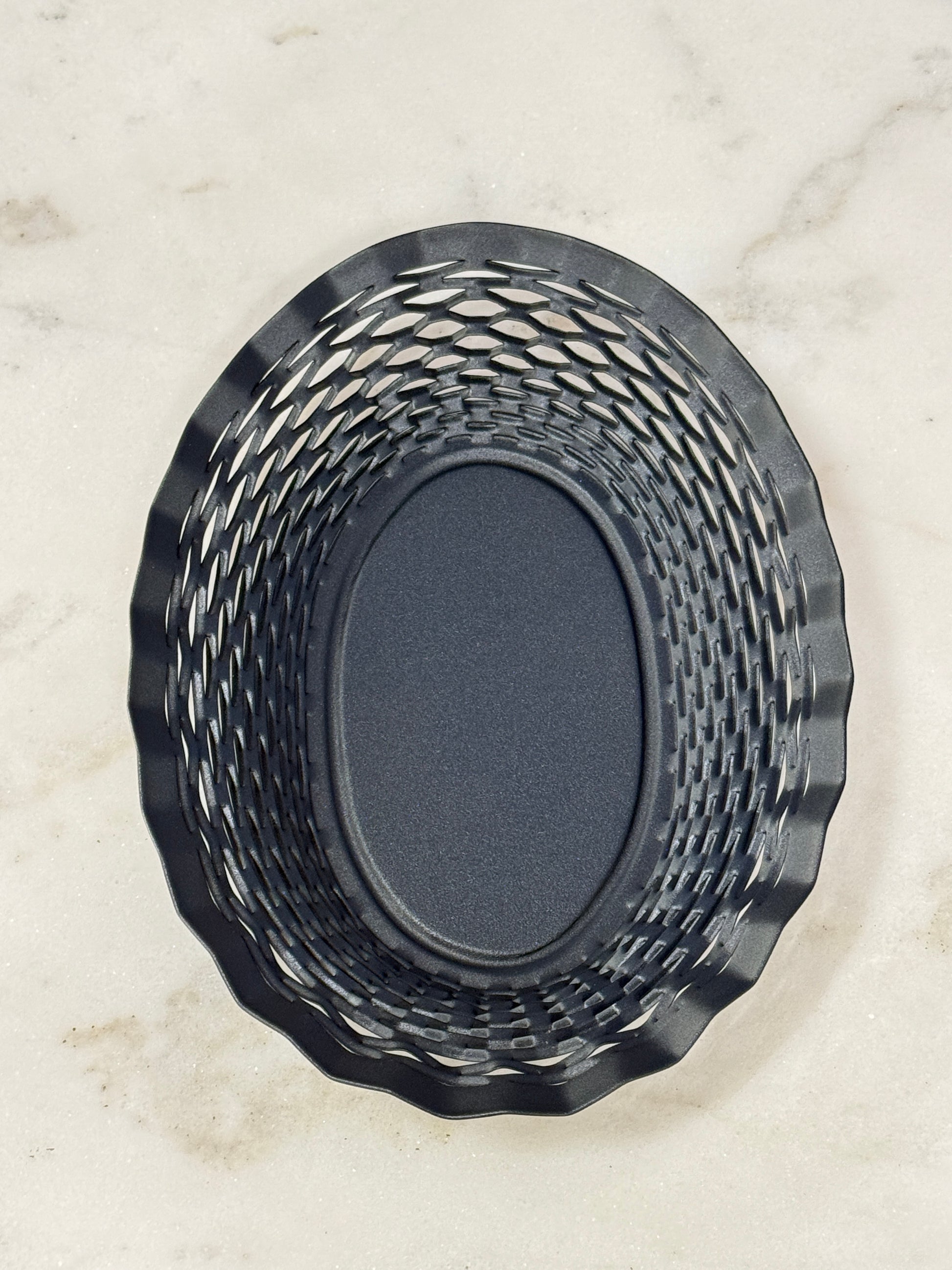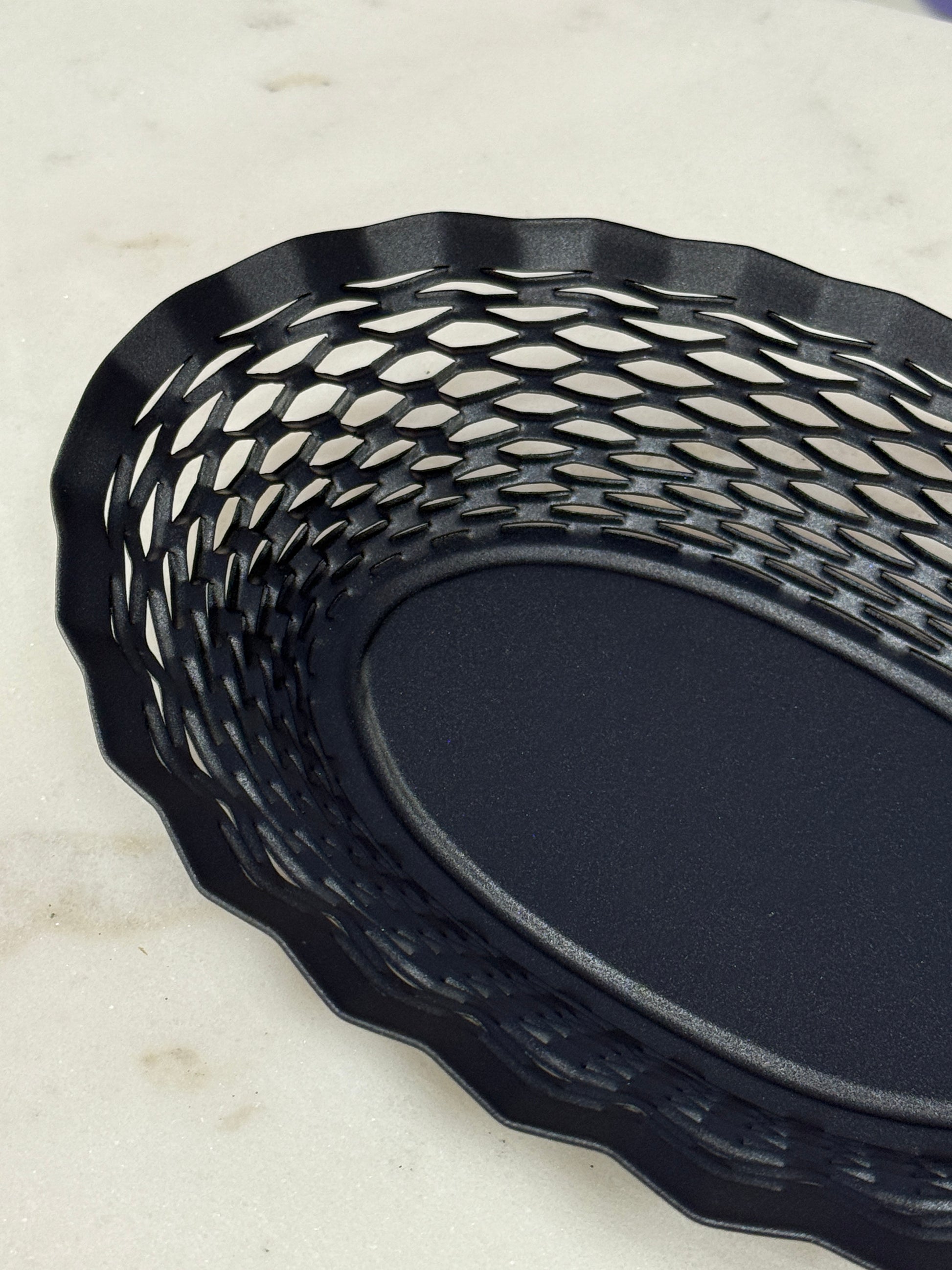 Cestino per il pane in un grazioso colore blu scuro da Roger Orfèvre, realizzato in acciaio inossidabile di alta qualità.