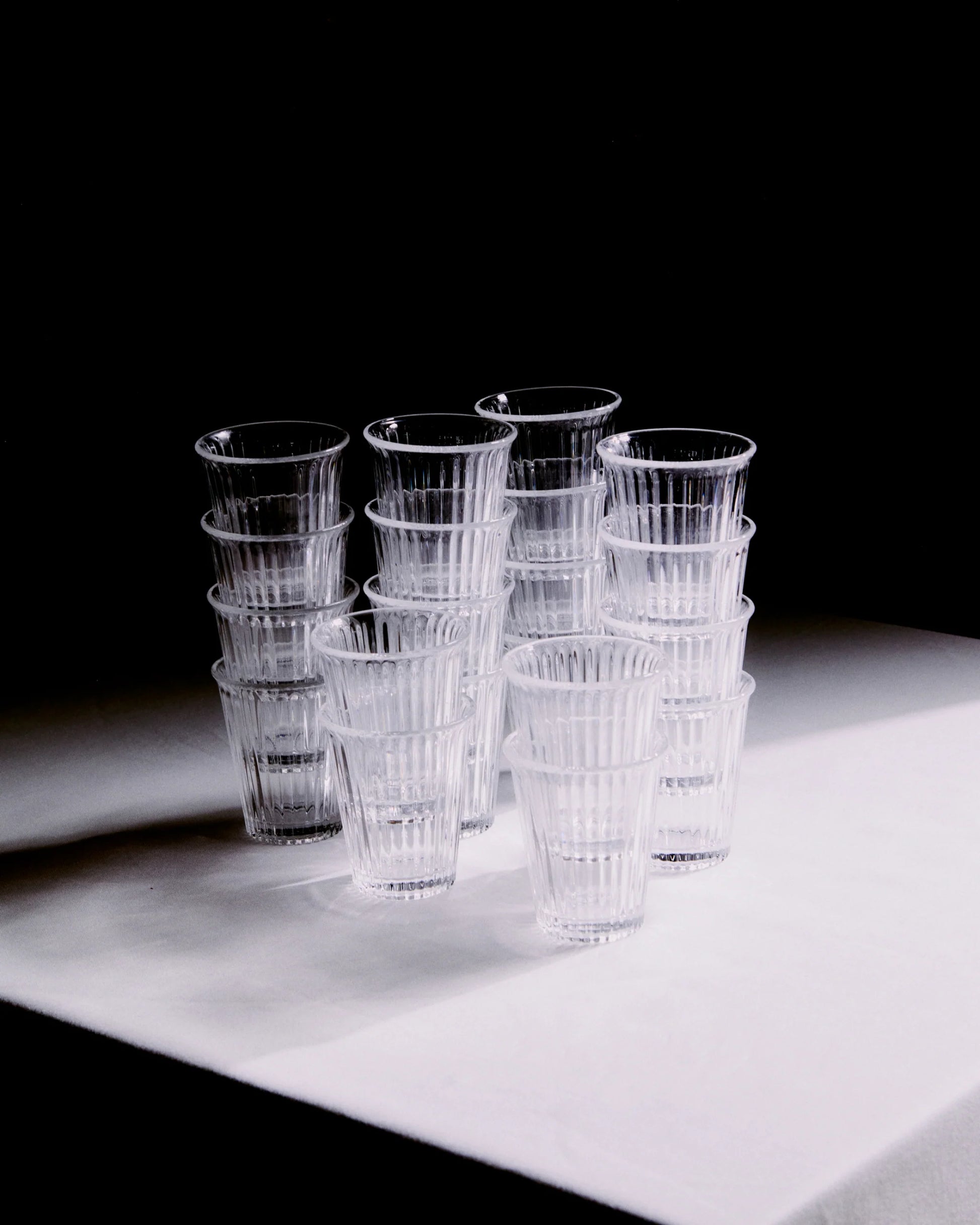Il design si ispira all'architettura antica e alle tecniche costruttive tradizionali, conferendo al bicchiere una forza discreta e un senso di equilibrio. Dettagli raffinati incontrano una forma solida: perfetto sia riempito d'acqua a tavola che con una birra fresca in una sera d'estate.