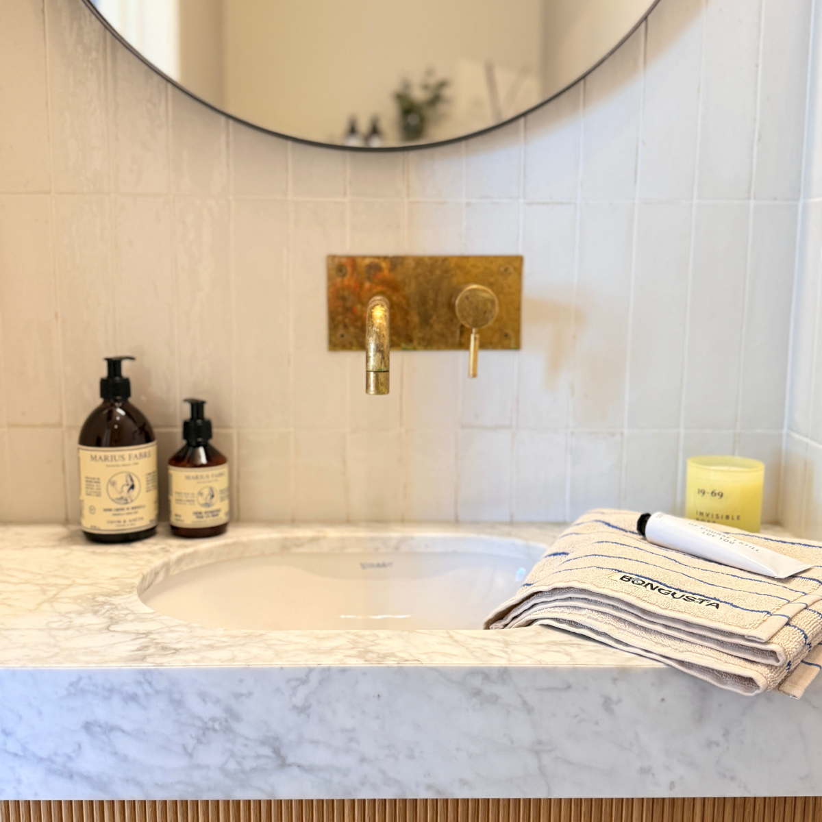Bongusta-håndklær i en ny farge, krem og blå 100 % økologisk bomull 🌊