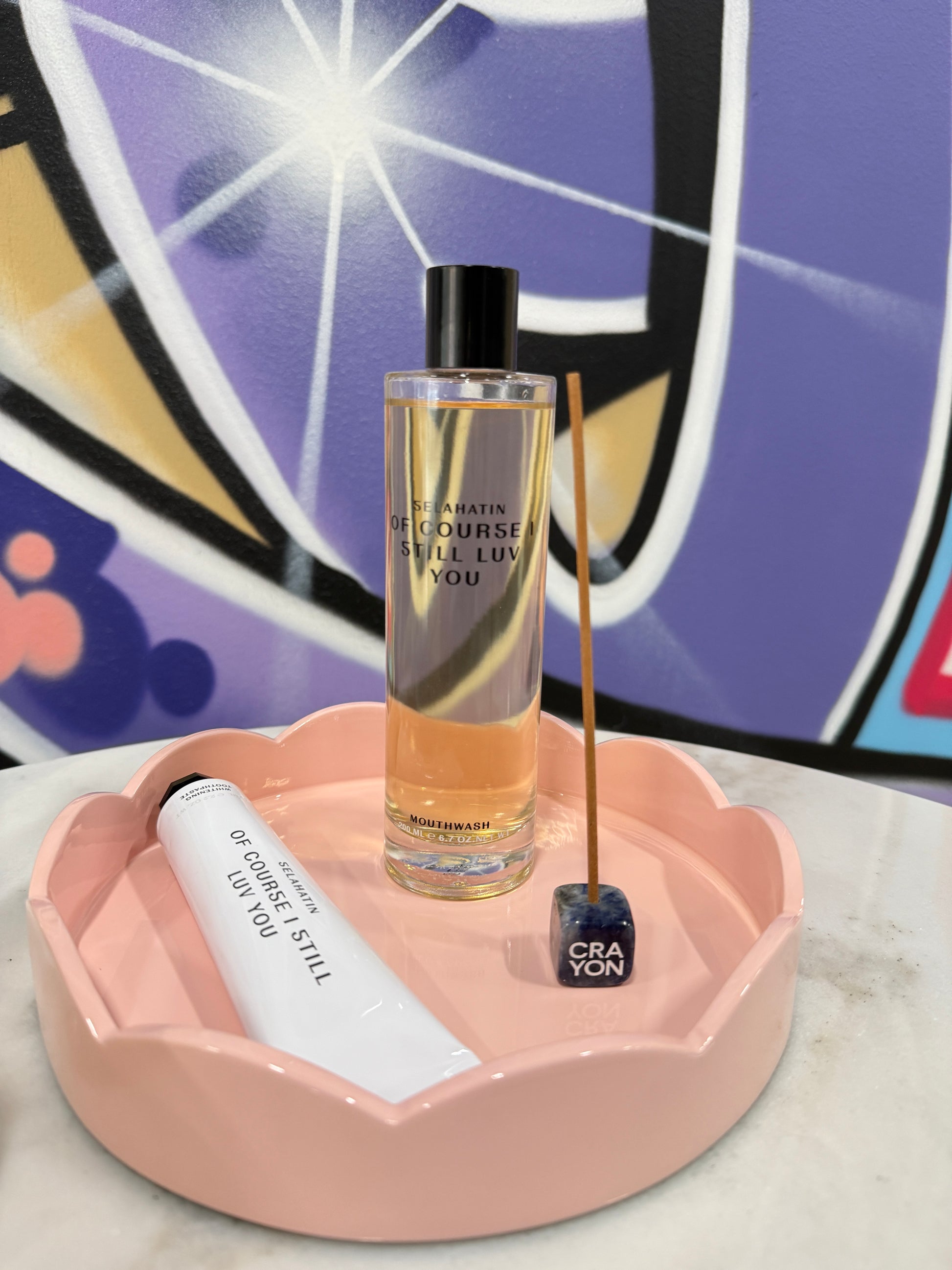 En rund ljusrosa lackad bricka, perfekt för servering eller dekoration. Varje bricka är tillverkad av trä och belagd med 20 lager högglanslack, handpolerad mellan varje lager.