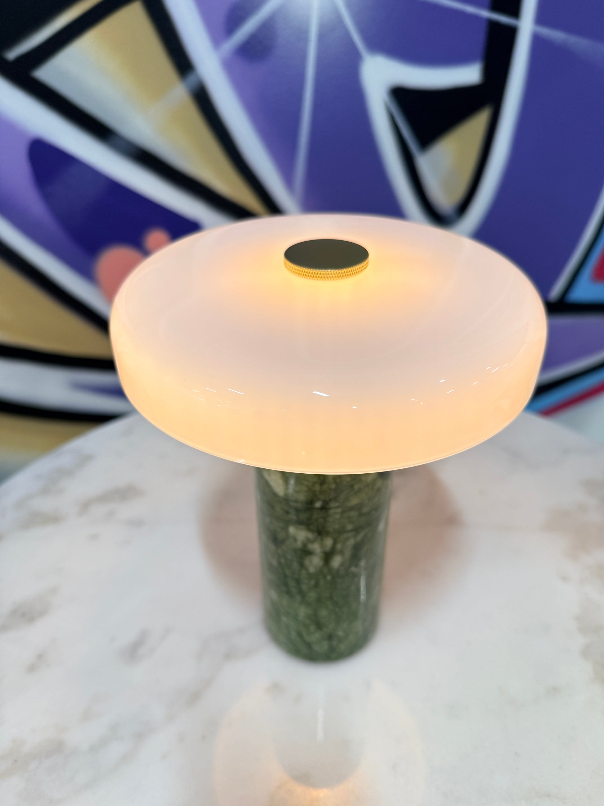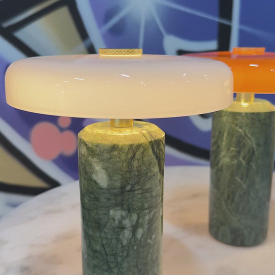 TRIP Portabel Lampa med ljusgrön marmorfot och vit lampskärm!